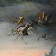Werkstatt des Hieronymus Bosch (um 1450–1516), Die Versuchung des heiligen Antonius, Triptychon, um 1520–1550, Öl auf Leinwand auf Holz übertragen, linker Flügel, 92 × 37,5 cm, (Ausschnitt), Foto: Bohdan und Varvara Khanenko Nationalmuseum in Kyjiw